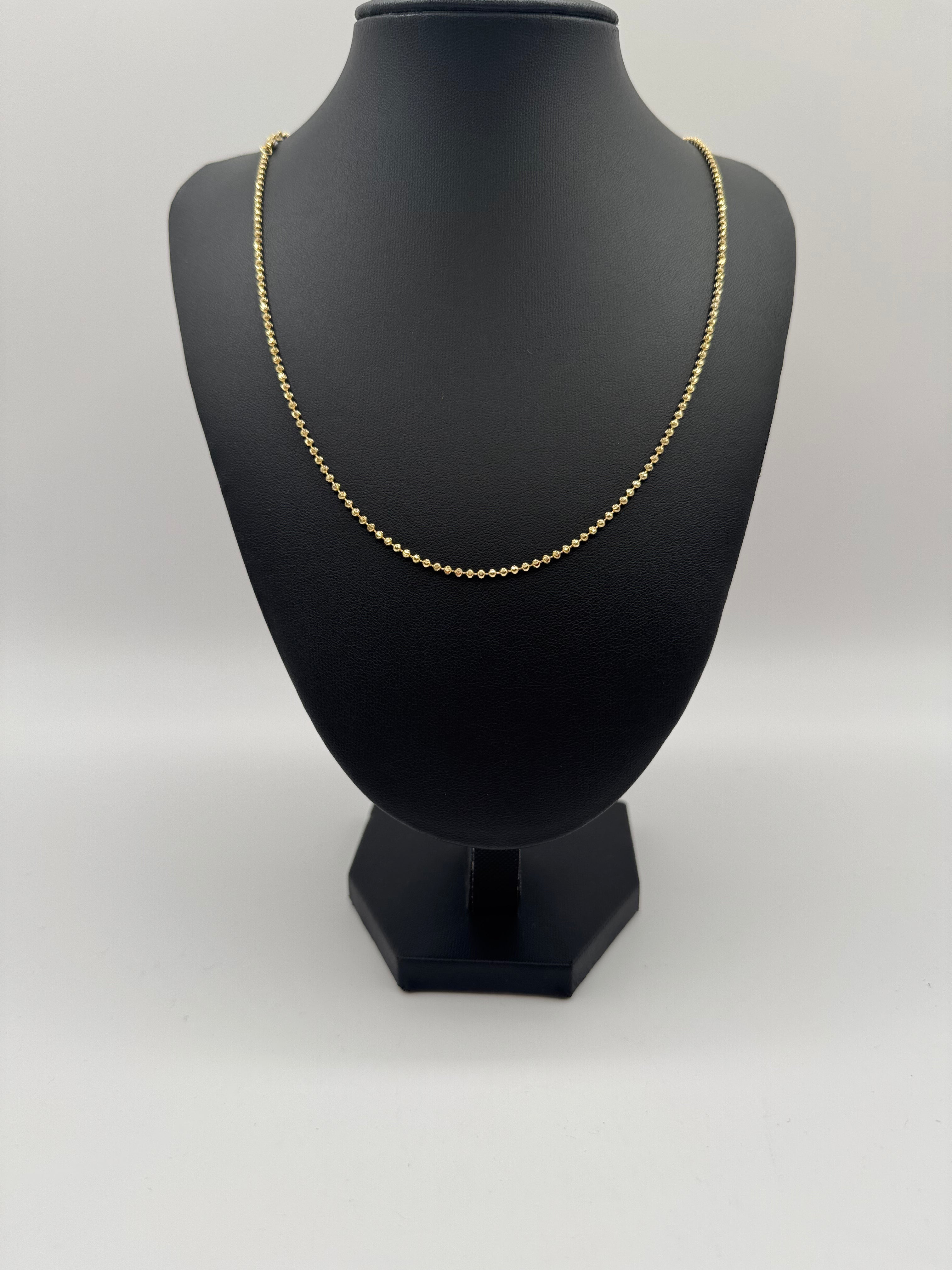 AUTHENTICATION NOTES: CHAIN IS IN MINT CONDITION AND IS USED. POLISH AND SHINE ARE GOOD. CHAIN IS HOLLOW GOLD. NATURAL 14KT GOLD COLORING. PURITY IS 14KT PER XRF.