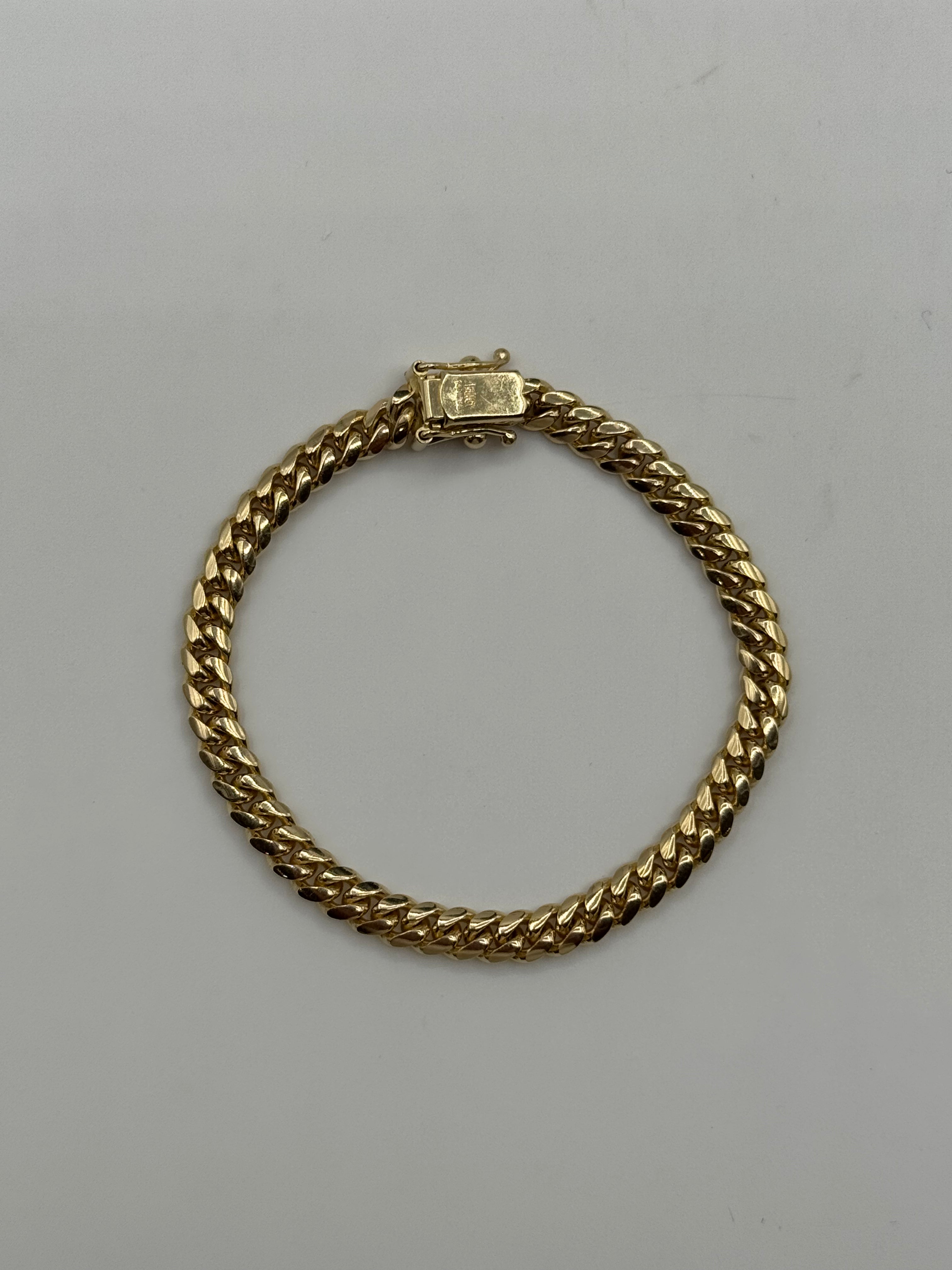 AUTHENTICATION NOTES: BRACELET IS USED AND IS IN MINT CONDITION. POLISH AND SHINE ARE GOOD. CHAIN IS SOLID GOLD. NATURAL 14KT GOLD COLORING. PURITY IS 14KT PER XRF.