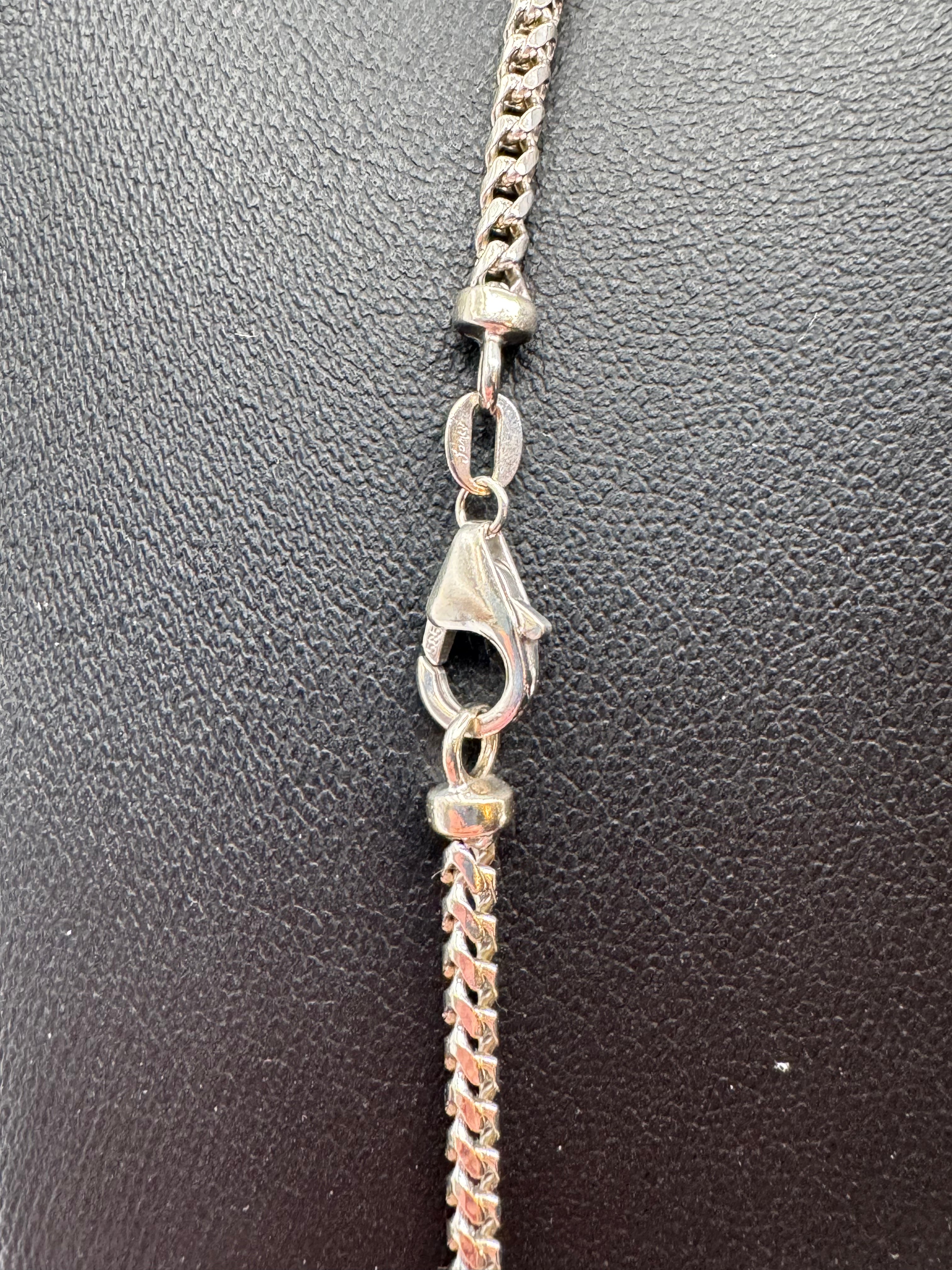 AUTHENTICATION NOTES: CHAIN IS USED. CHAIN IS IN GOOD CONDITION. POLISH AND SHINE ARE OK. CHAIN IS SOLID GOLD. NATURAL 14KT WHITE GOLD COLORING. PURITY IS 14KT PER XRF.