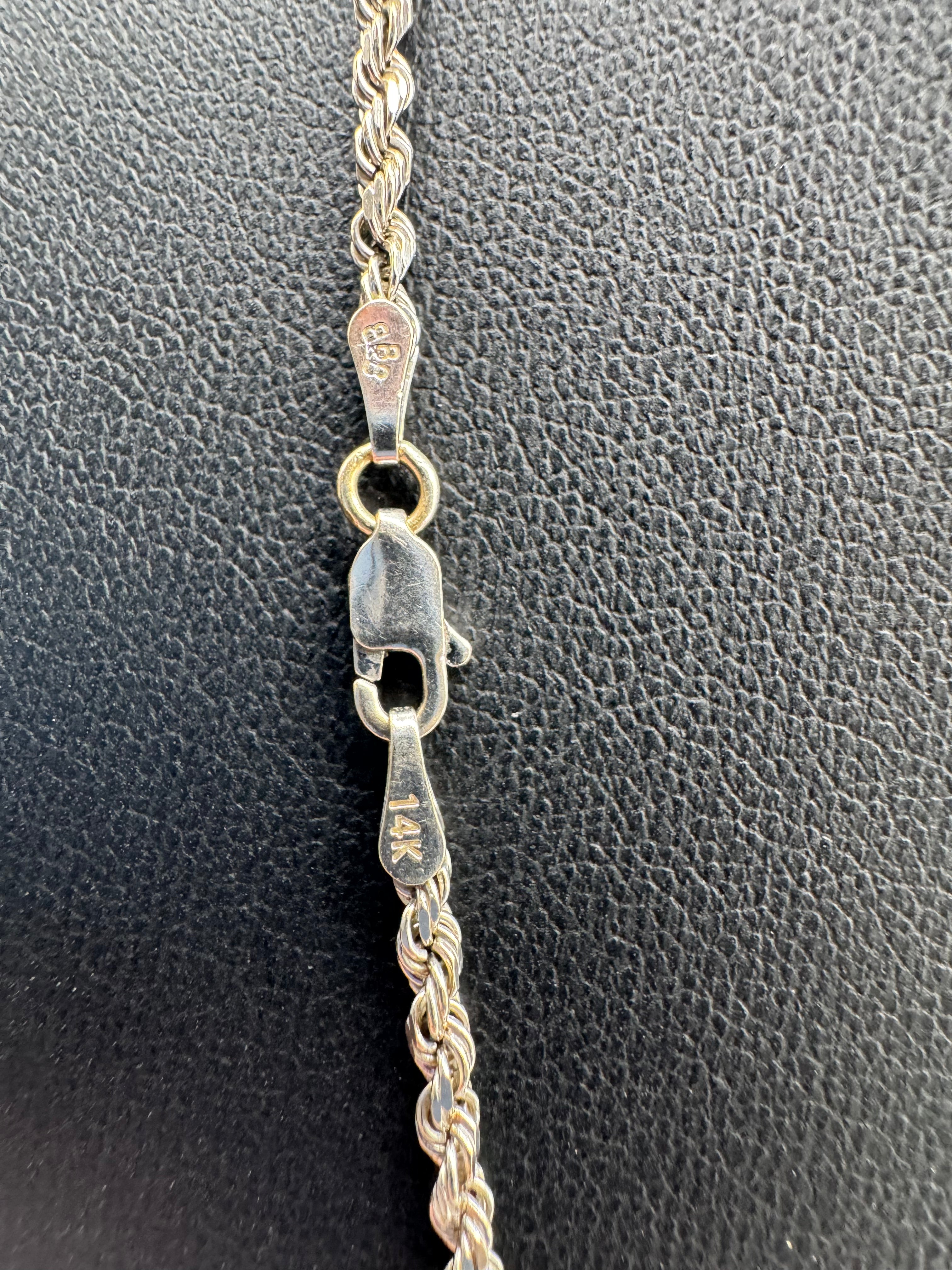 AUTHENTICATION NOTES: CHAIN IS USED. CHAIN IS IN MINT CONDITION. POLISH AND SHINE ARE GOOD, WHITE GOLD HAS FADING WITH WEAR. CHAIN IS SOLID GOLD. NATURAL 14KT GOLD COLORING. PURITY IS 14KT PER XRF.