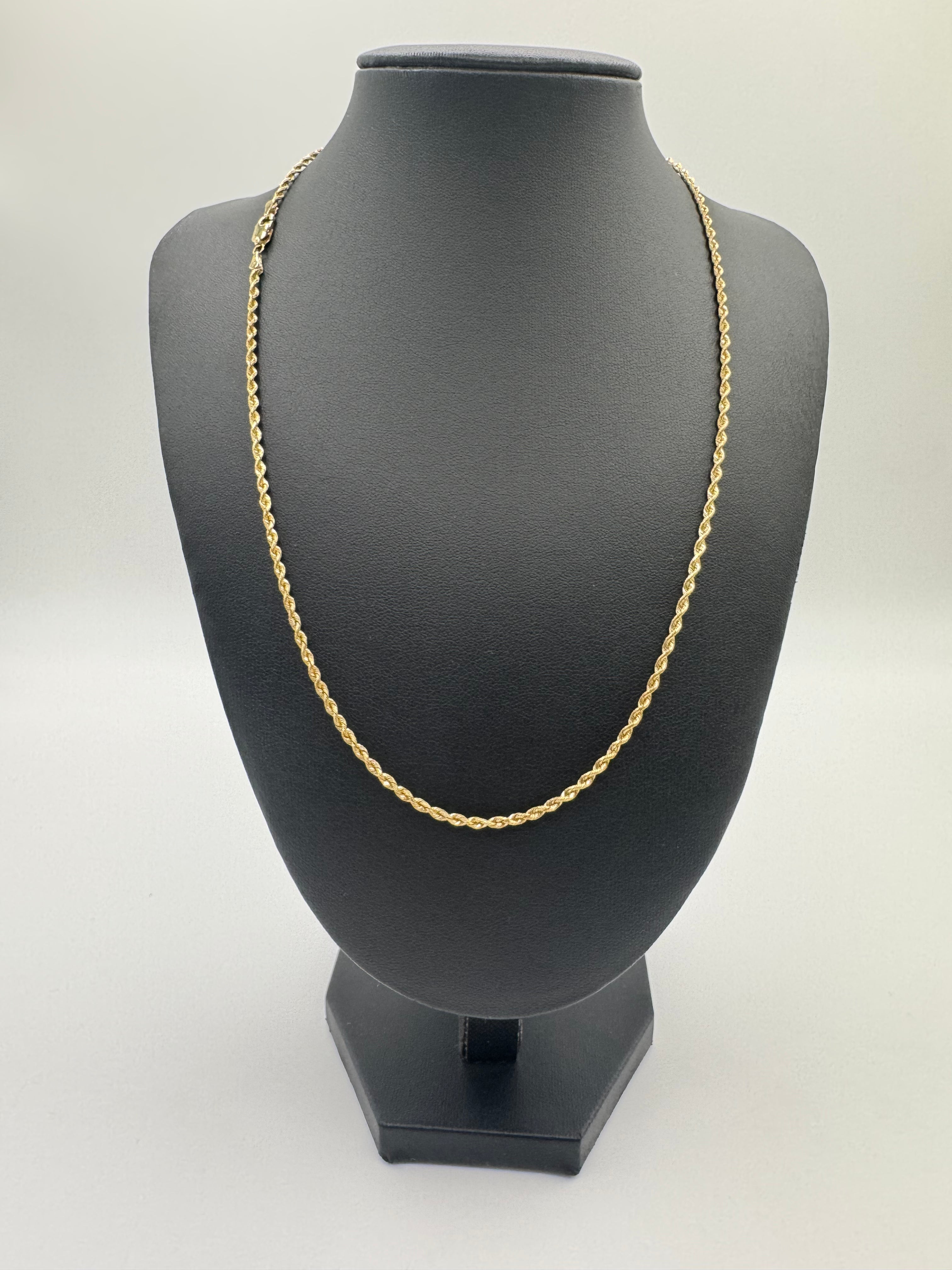 AUTHENTICATION NOTES: CHAIN IS USED AND IN GOOD CONDITION. POLISH AND SHINE ARE GOOD. CHAIN IS SOLID GOLD. NATURAL 14KT GOLD COLORING. PURITY IS 14KT PER XRF.