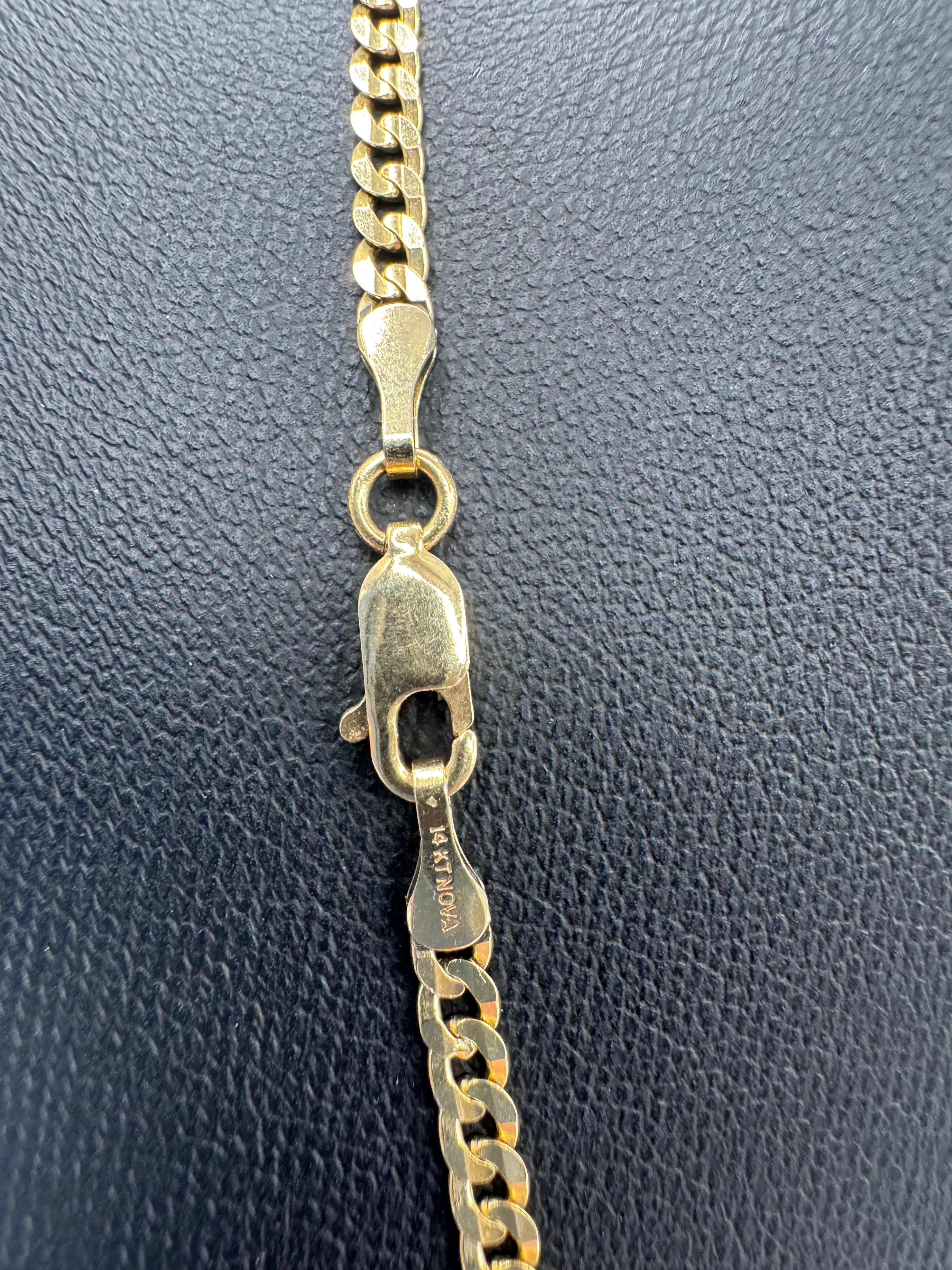 AUTHENTICATION NOTES: CHAIN IS USED AND IN MINT CONDITION. POLISH AND SHINE ARE GOOD. CHAIN IS SOLID GOLD. NATURAL 14KT GOLD COLORING. PURITY IS 14KT PER XRF.