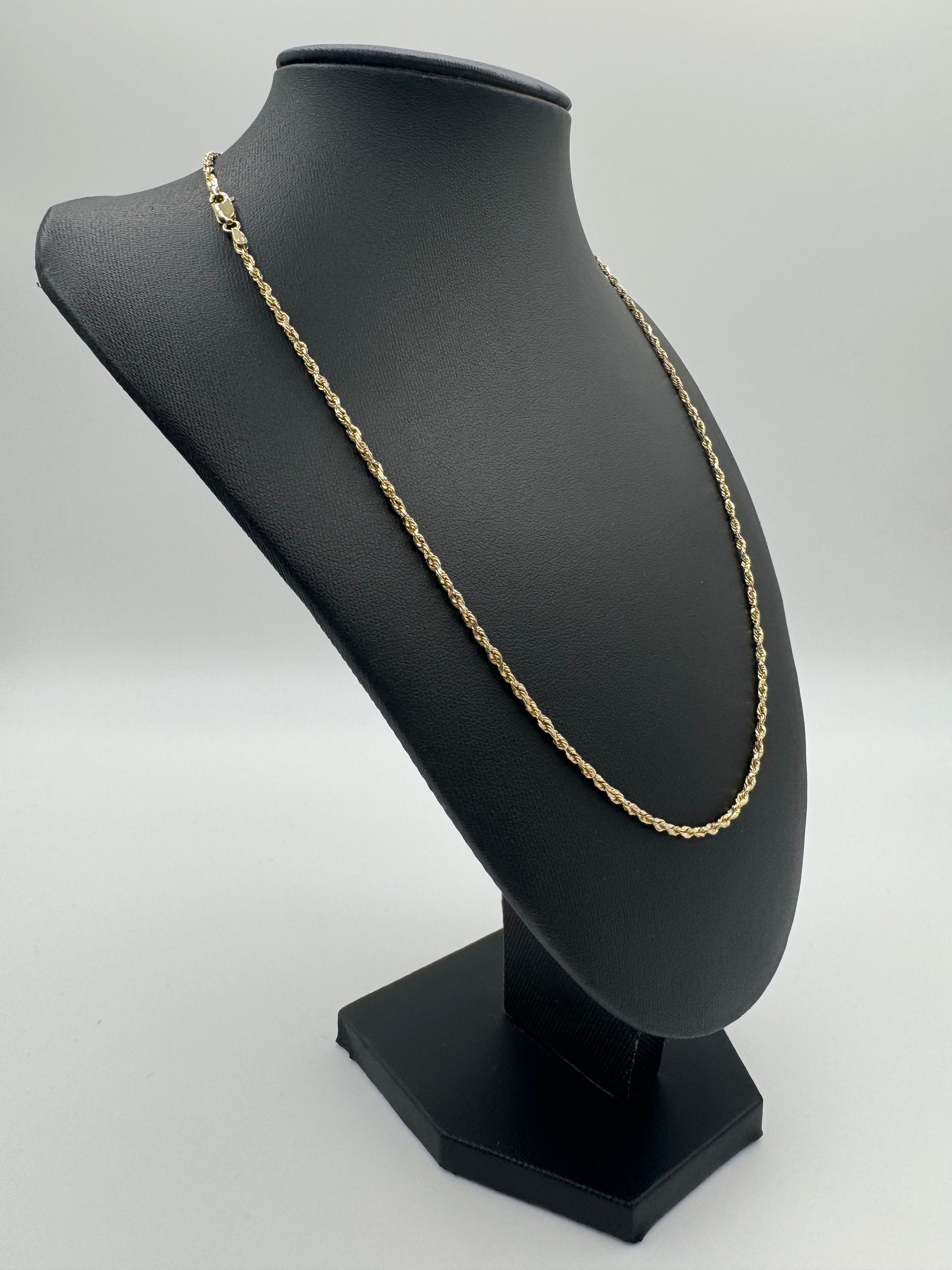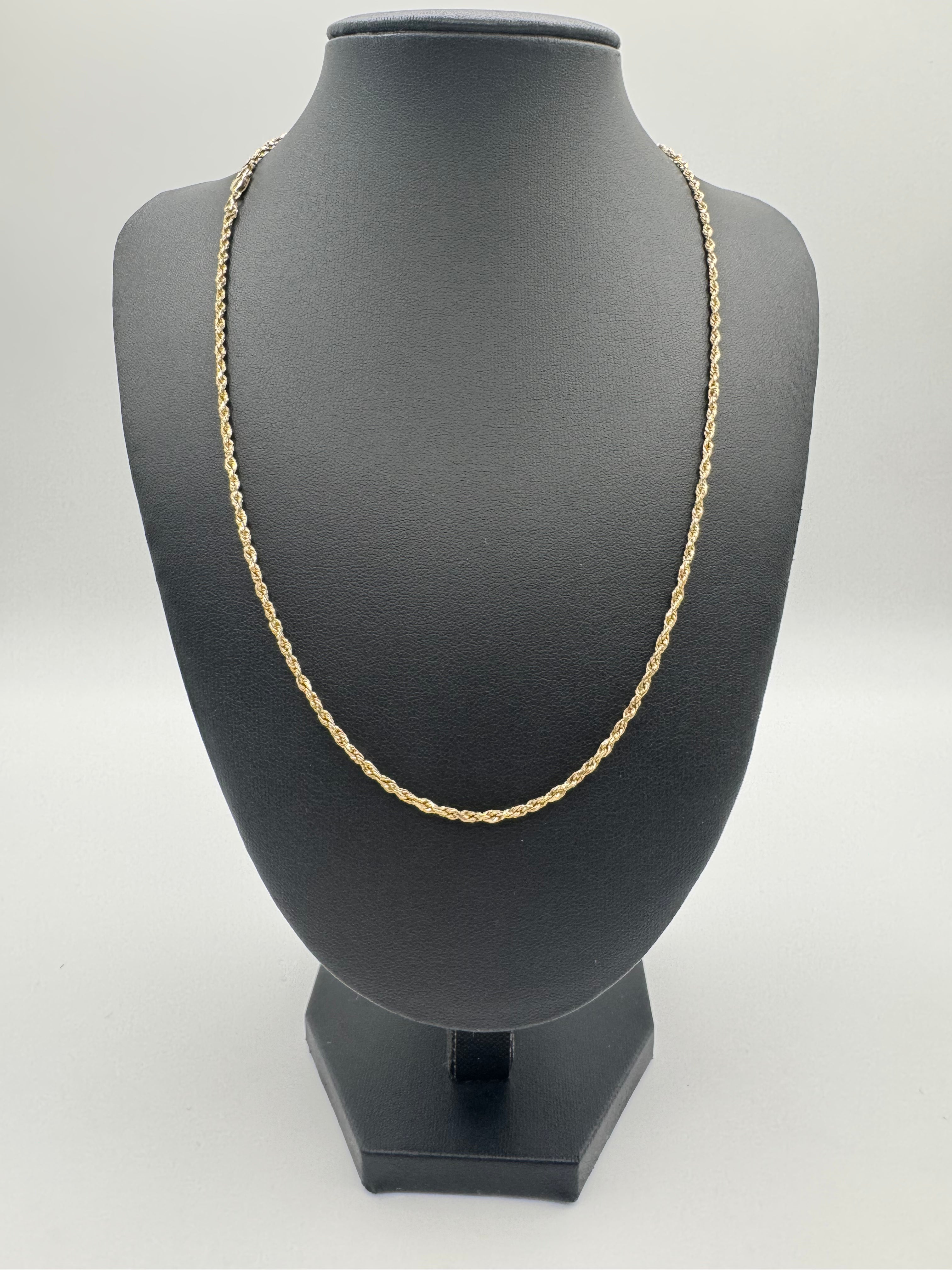 AUTHENTICATION NOTES: CHAIN IS USED AND IN GOOD CONDITION. POLISH AND SHINE ARE GOOD. CHAIN IS SOLID GOLD. NATURAL 14KT GOLD COLORING. PURITY IS 14KT PER XRF.