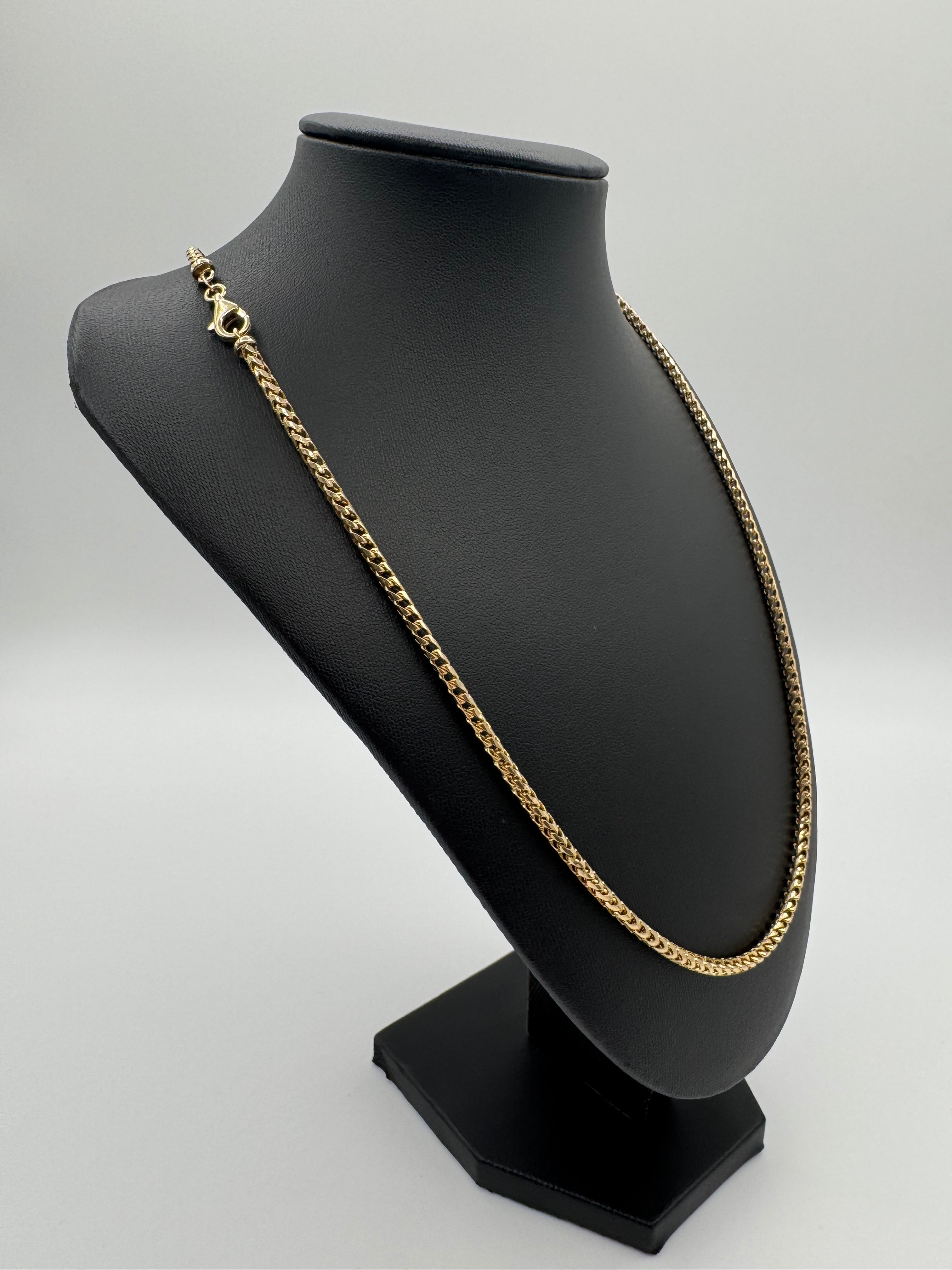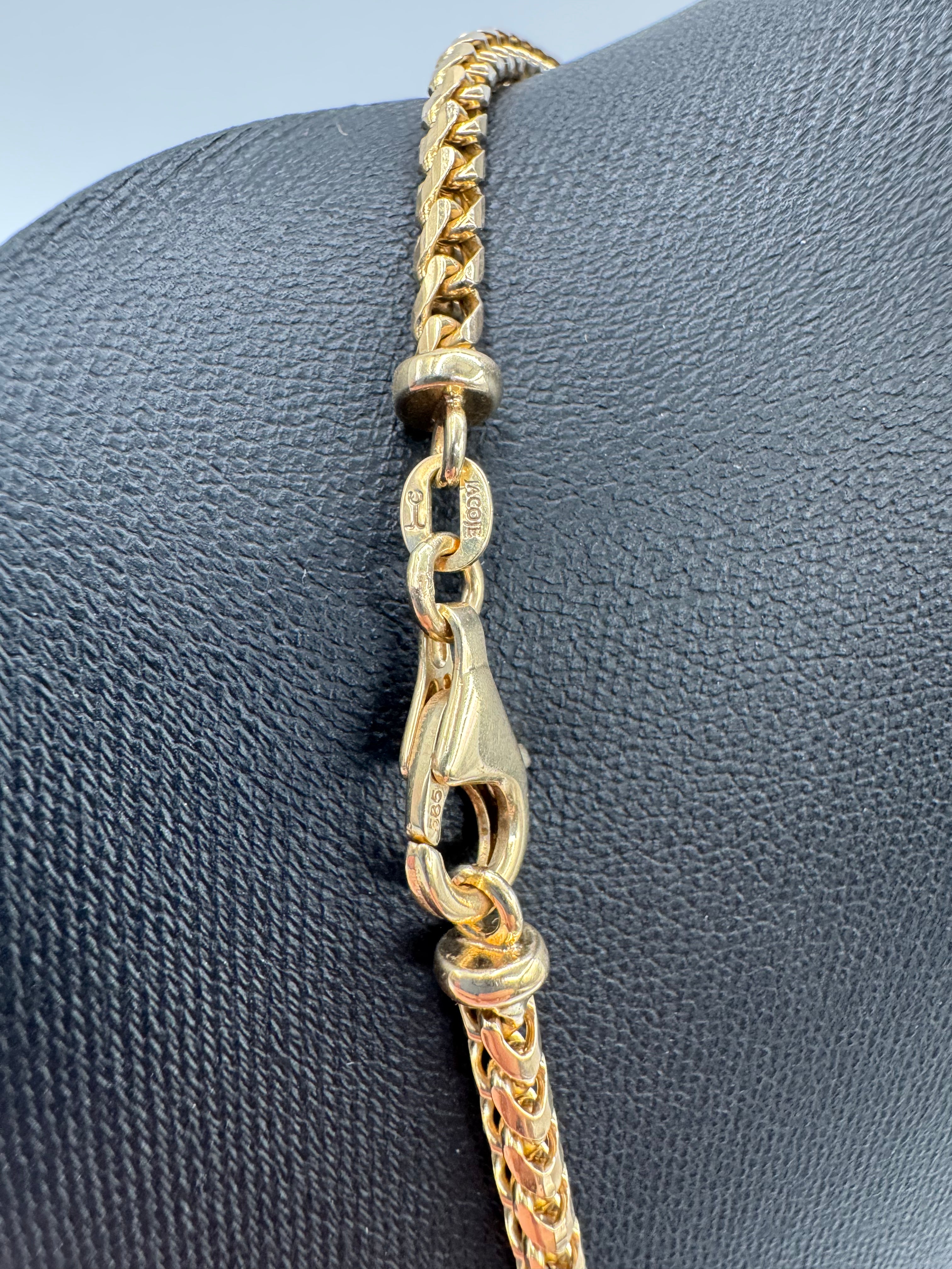 AUTHENTICATION NOTES: CHAIN IS USED AND IS IN MINT CONDITION. POLISH AND SHINE ARE GOOD. CHAIN IS SOLID GOLD. NATURAL 14KT GOLD COLORING. PURITY IS 14KT PER XRF.