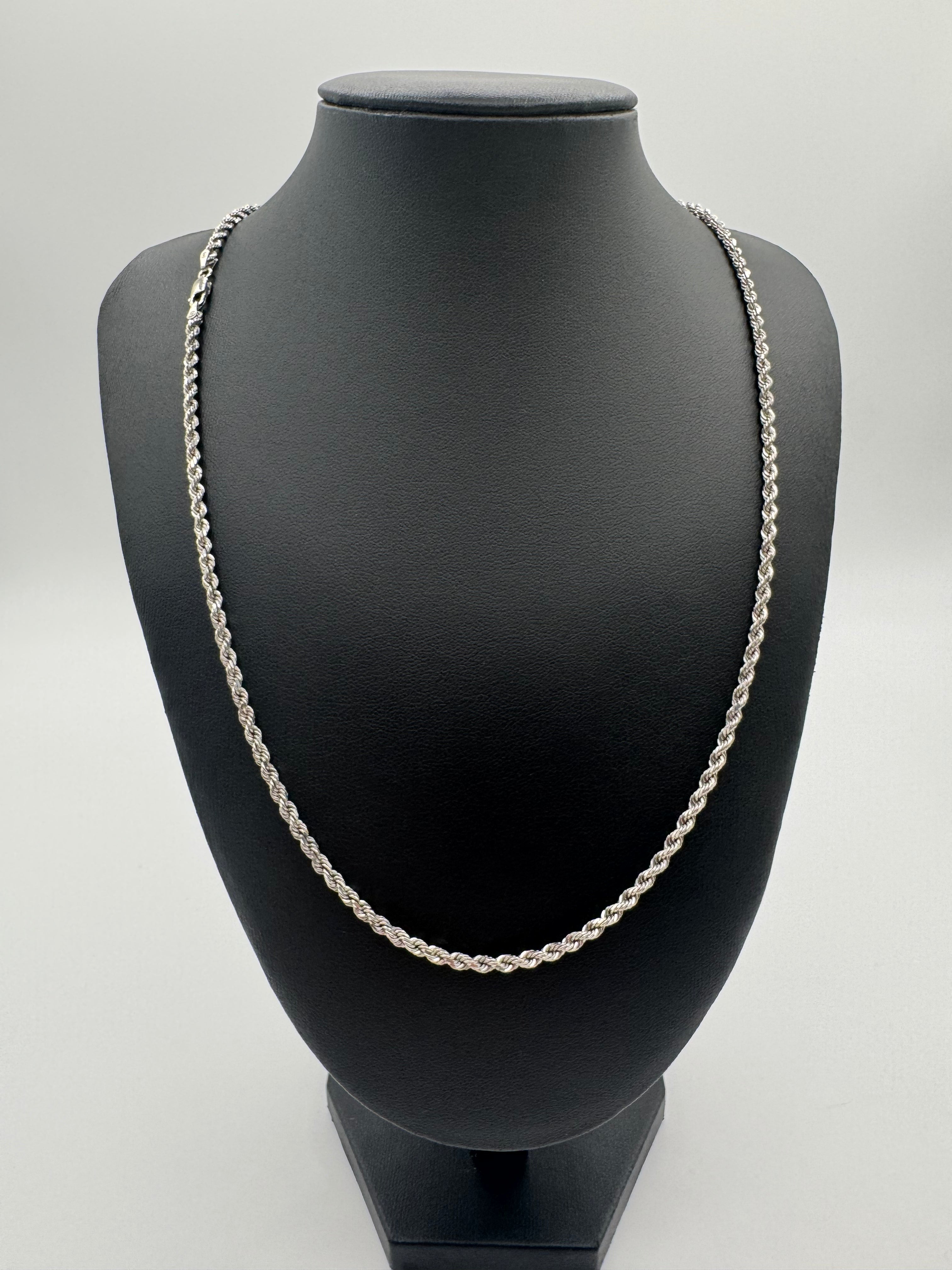 AUTHENTICATION NOTES: CHAIN HAS BEEN USED AND IS IN MINT CONDITION. POLISH AND SHINE ARE GOOD. CHAIN IS SOLID GOLD. NATURAL 14KT WHITE GOLD COLORING. PURITY IS 14KT PER XRF.