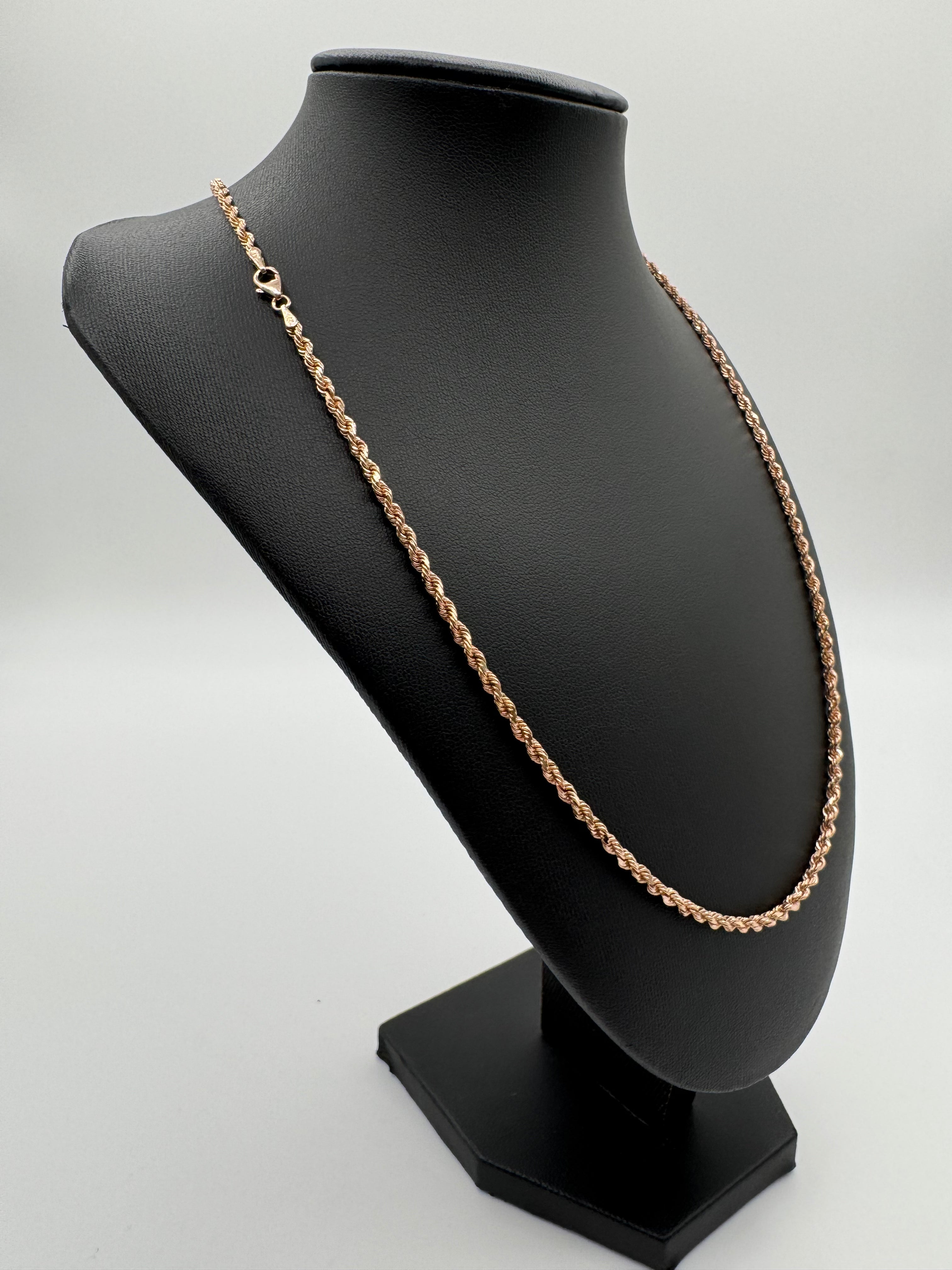AUTHENTICATION NOTES: CONDITION IS USED. CHAIN IS IN GOOD CONDITION. POLISH AND SHINE ARE GOOD. CHAIN IS SOLID GOLD. NATURAL 14KT ROSE GOLD COLORING. PURITY IS 14KT PER XRF.