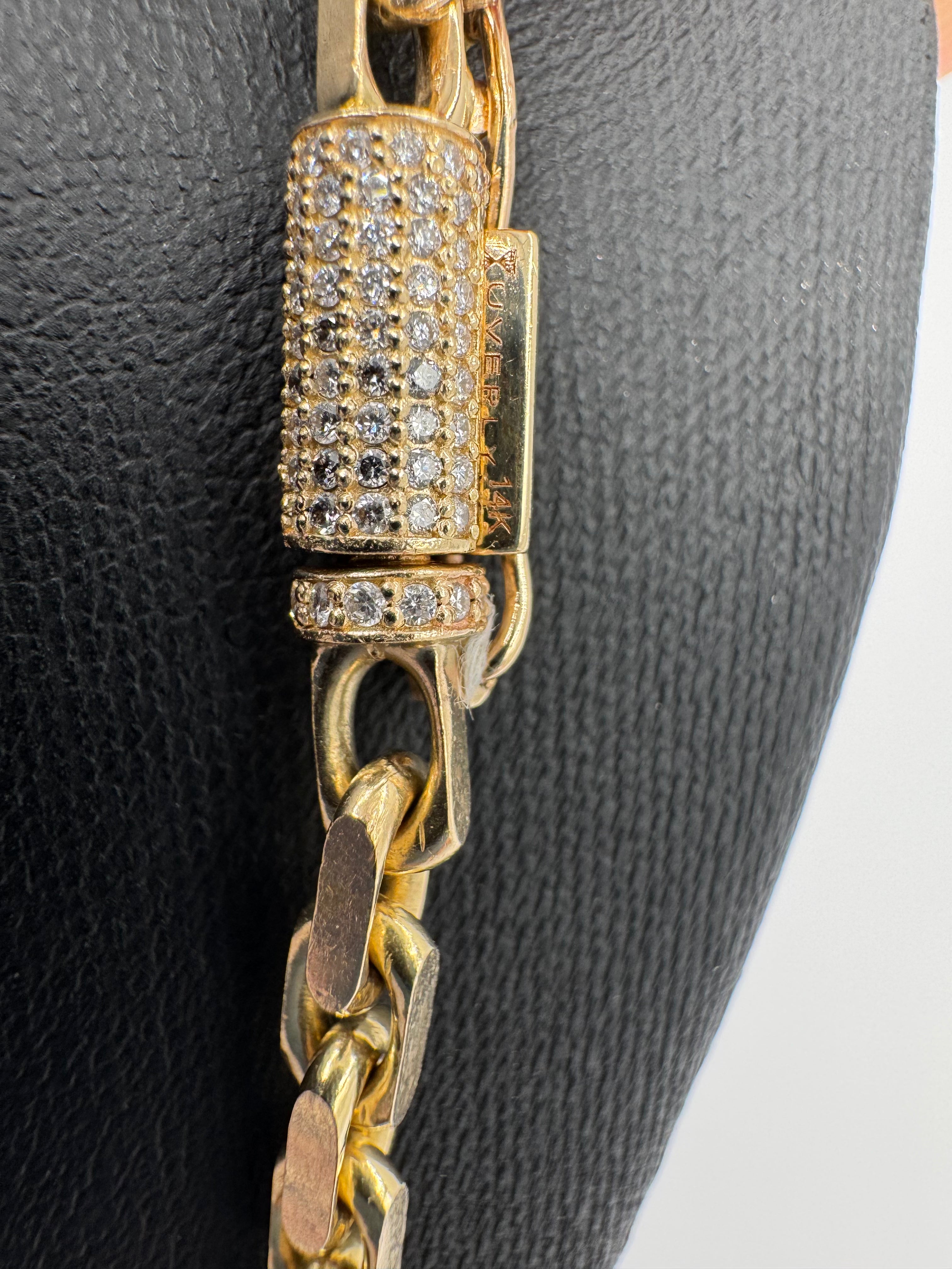 AUTHENTICATION NOTES: CHAIN IS USED. CHAIN IS IN EXCELLENT CONDITION. POLISH AND SHINE ARE GOOD. CHAIN HAS DIAMOND LOCK. CHAIN IS SOLID GOLD. NATURAL 14KT GOLD COLORING. PURITY IS 14KT PER XRF.