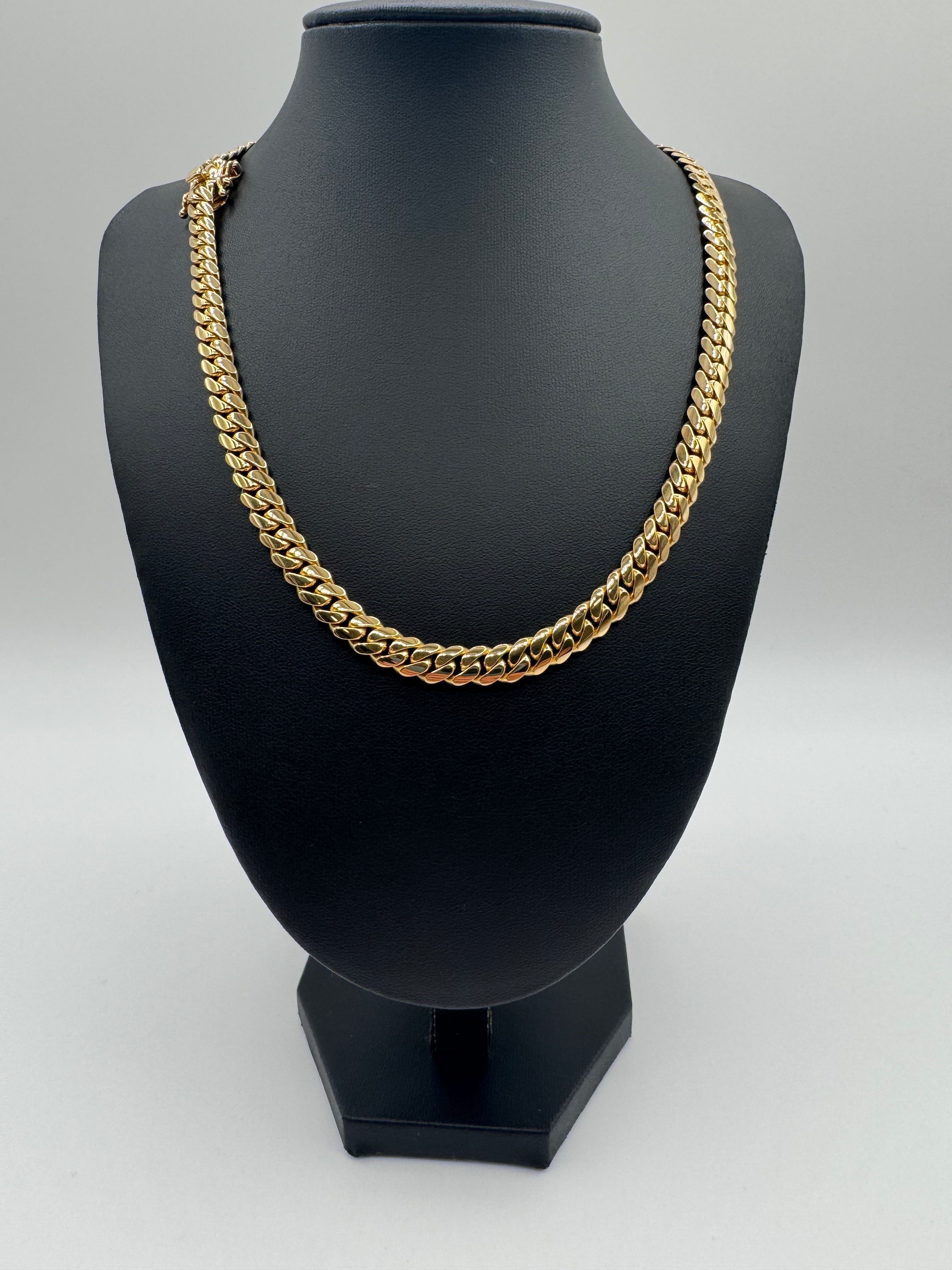 AUTHENTICATION NOTES: CHAIN IS USED AND IN MINT CONDITION. POLISH AND SHINE ARE GOOD. CHAIN IS SOLID GOLD. NATURAL 14KT GOLD COLORING. PURITY IS 14KT PER XRF.