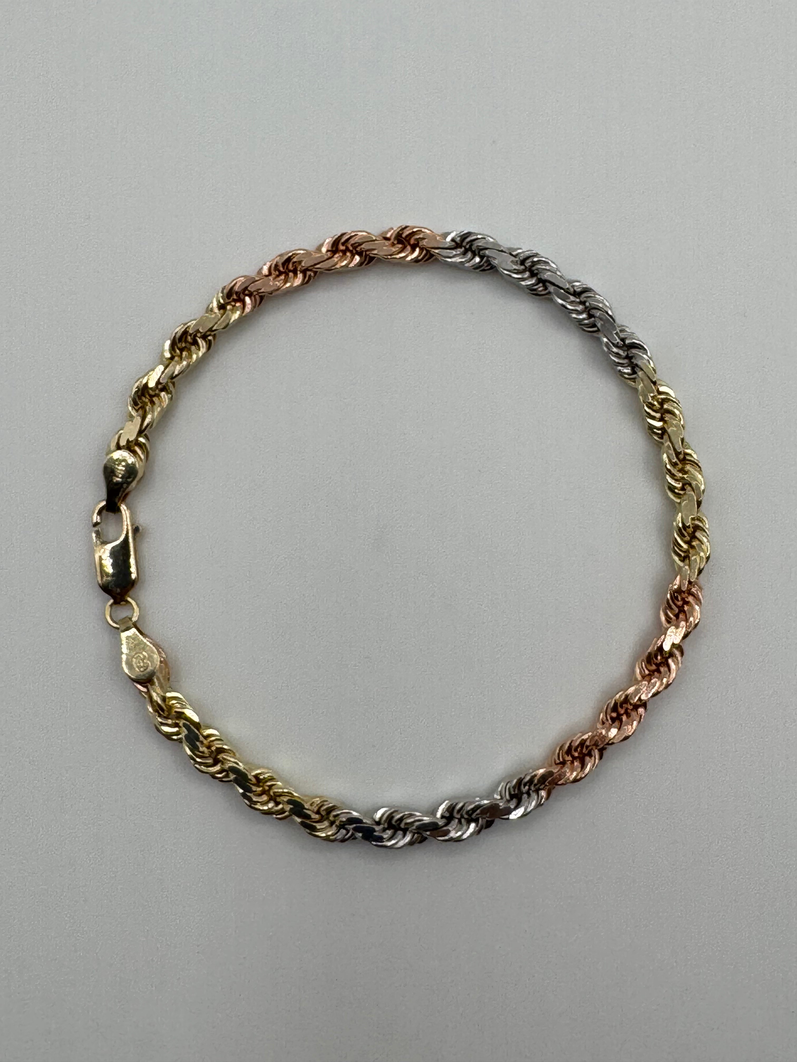 5mm Tri Color Rope Bracelet 7.5 inch (DIAMOND CUT)